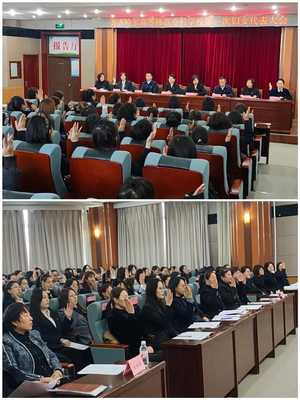 党委副书记、纪委书记宋英春宣读《齐齐哈尔高等师范专科学校妇女第一次代表大会选举办法(草案)》《齐齐哈尔高等师范专科学校妇女第一次代表大会总监票人、监票人建议名单》和《计票人名单》,全体代表审议通过。全体代表投票选举11名同志当选为齐师专妇女联合会第一届执行委员会委员。