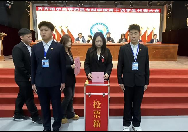 在热情洋溢的团歌声中齐齐哈尔高等师范专科学校第十次学生代表大会圆满完成各项议程,胜利闭幕。