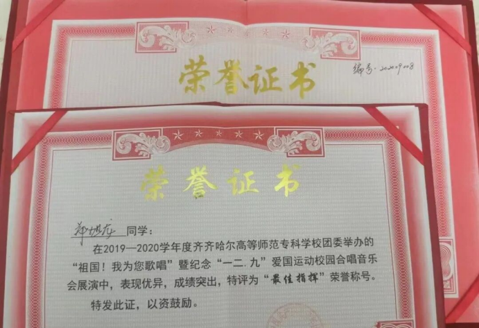 2019-2020学年度:校一二九“祖国!我为你歌唱"获得最佳指挥称号