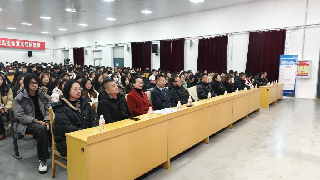 为助力学生明晰职业方向、提升就业创业能力,落实2026年国家级评估师生培训指标,推进就业创业孵化基地建设,12月24日下午,我校联合齐齐哈尔翔鹤人力(国有)资源有限公司,在大学生活动中心举办“立足高职教育,规划职业蓝图”大学生职业规划专题培训。本次培训采用线上、线下相结合的形式开展,校内外师生共同参与。副校长金瓯及各系学管主任、辅导员参加会议。
