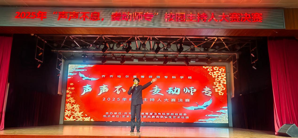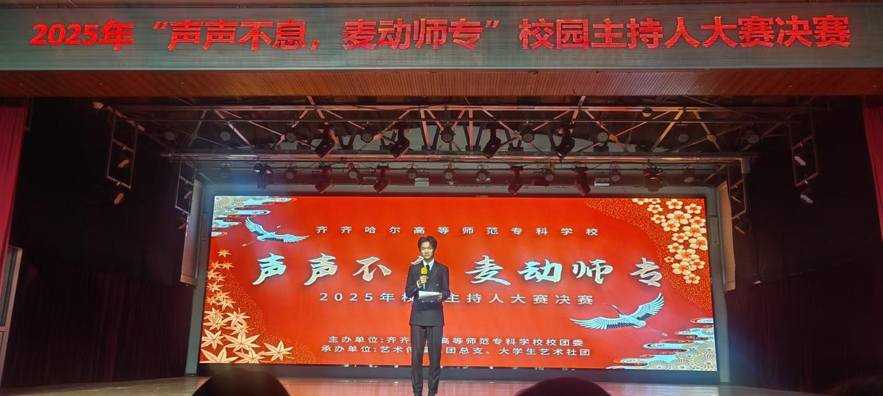 用声音传递梦想,以话筒展现自我!11月19日下午,由我校团委主办、艺术传媒系承办的校园主持人大赛决赛在大学生活动中心举行,600余名师生共同见证了这场赛事的精彩落幕。这场以“声声不息,麦动师专”为主题的赛事,吸引了大批怀揣主持梦的学子踊跃参与,经过44名初赛选手的激烈比拼,20名选手脱颖而出,在决赛舞台上展开了一场精彩绝伦的声音较量。