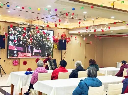 热情洋溢的歌曲《东北民谣》一开口便点燃现场气氛,熟悉的旋律让老人们倍感亲切;柔美婉约的舞蹈《烟雨行舟》如诗如画,将江南水乡的韵味娓娓道来,赢得阵阵掌声;歌曲《如愿》饱含对老一辈奋斗者的敬意与感恩,真挚的情感打动了在场每一位观众;《安河桥》的悠扬旋律与手风琴独奏《山楂树》的经典曲调,更是勾起了老人们的青春回忆,不少爷爷奶奶跟着轻声哼唱。