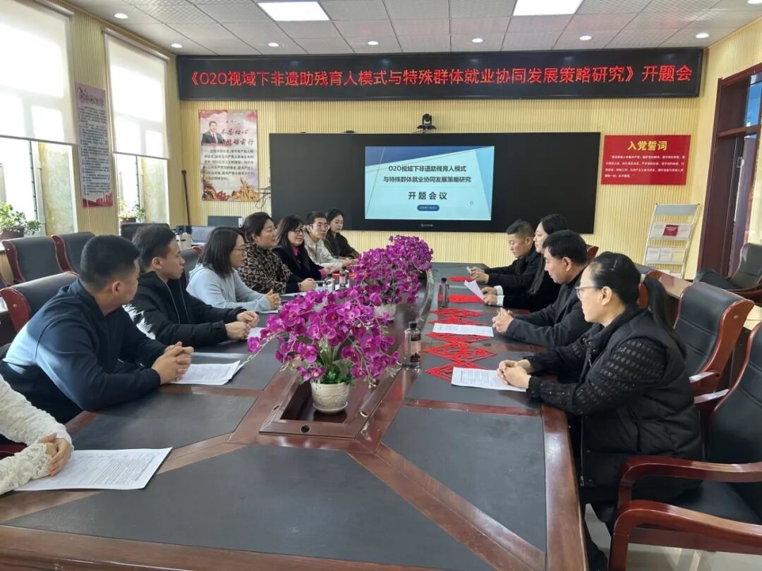 11月4日,黑龙江省社会科学界联合会发布了《2025年黑龙江省经济社会发展重点研究课题(基地专项)立项公告》,我校申报的《O2O视域下非遗助残育人模式与特殊群体就业协同发展策略研究》课题被批复立项,这也是我校近年来在该类项目的首次成功立项。为保障课题研究工作扎实推进,非遗助残育人试点落地见效,11月27日,课题组赴依安特殊教育学校同该校校长韩林玓、依安县特殊教育资源中心李海臣主任、市级剪纸非遗传承人孙霁昕(课题组成员)开展黑龙江省经济社会发展重点研究课题(基地专项)开题报告会暨专项调研活动。