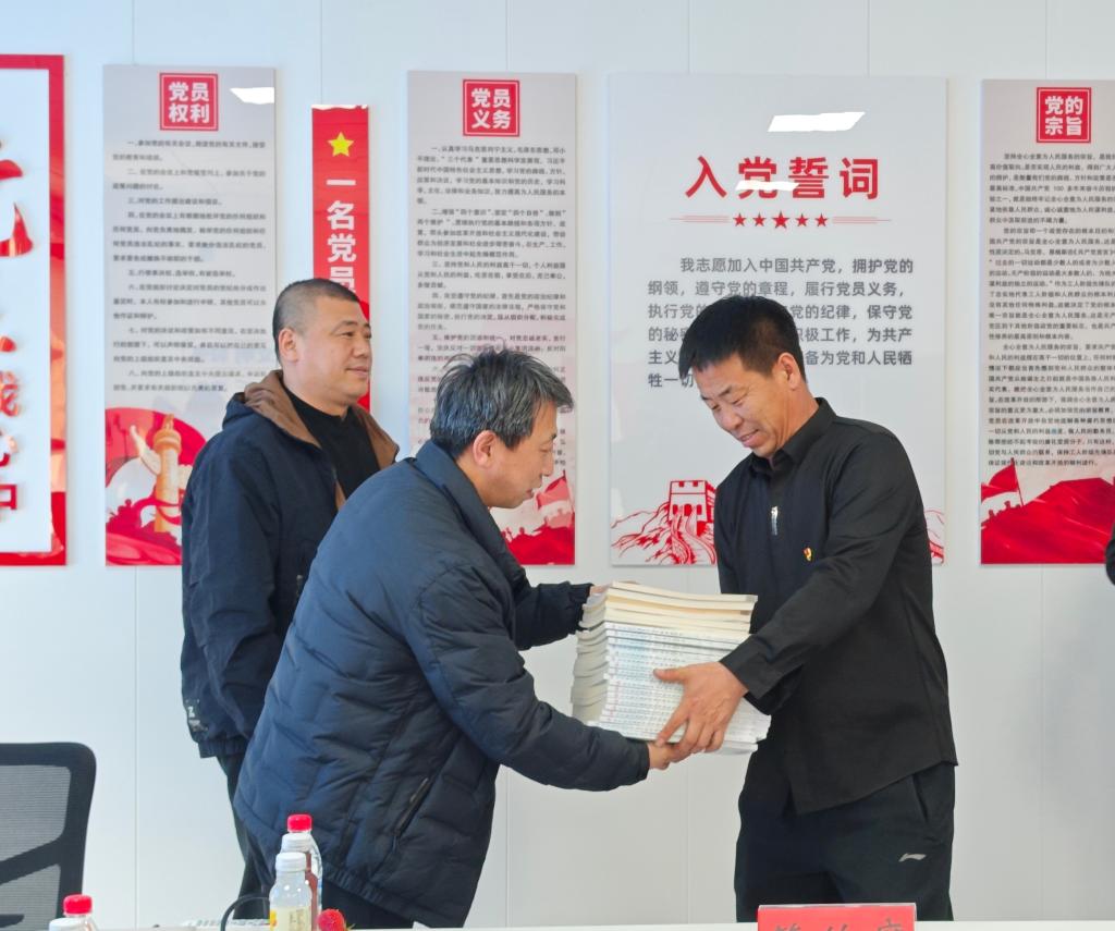 揭牌仪式后,思政部党支部向周三村党支部赠送了党的创新理论书籍、思政教育读本、政策解读手册等学习资料,党员教师围绕“党建引领乡村振兴”讲授专题党课,切实助力村级党组织理论学习常态化、规范化开展。