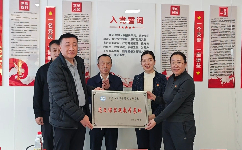 在全体人员的共同见证下,校地双方共同签订《共建“大思政课”实践教学基地合作协议》,为后续校地深度合作划定了清晰路径。双方还共同为“齐齐哈尔高等师范专科学校思政课实践教学基地”揭牌,这一基地的建立,标志着齐师专思政教育实践阵地正式向乡村基层延伸,为打造“行走的思政课”、“田间地头的思政课”、推动思政教育走深走实奠定了坚实基础。