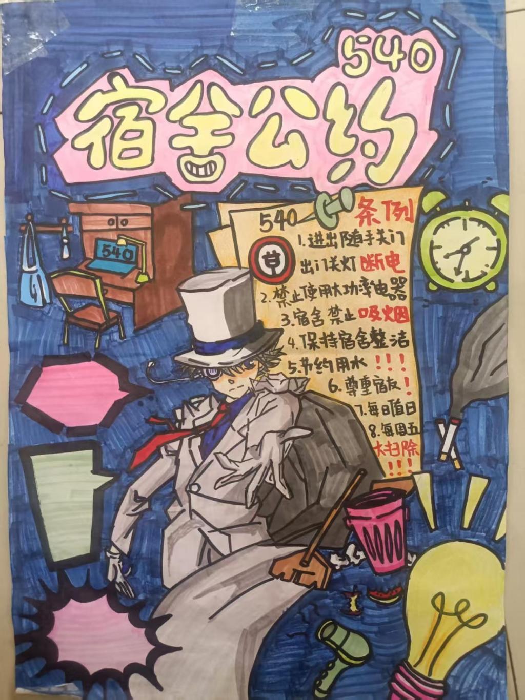 本次活动以海报创作的形式,充分展现了各寝室的团队凝聚力与创新活力,进一步明确了寝室文明的行为准则与建设标准,有效增强了同学们自觉遵守寝室文明公约的意识,为构建和谐融洽的寝室关系、营造乐学善居的校园氛围奠定了坚实基础。