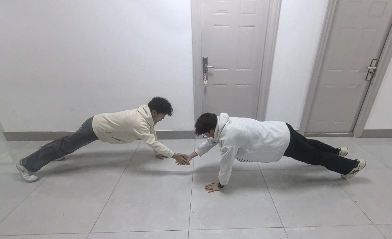 本次比赛创新采用视频参赛形式,要求各寝室选派两名成员,在一分钟内完成尽可能多的标准击掌俯卧撑动作。参赛视频需完整记录全过程,确保动作规范、击掌清晰,展现了同学们认真备赛、协同拼搏的精神风貌。